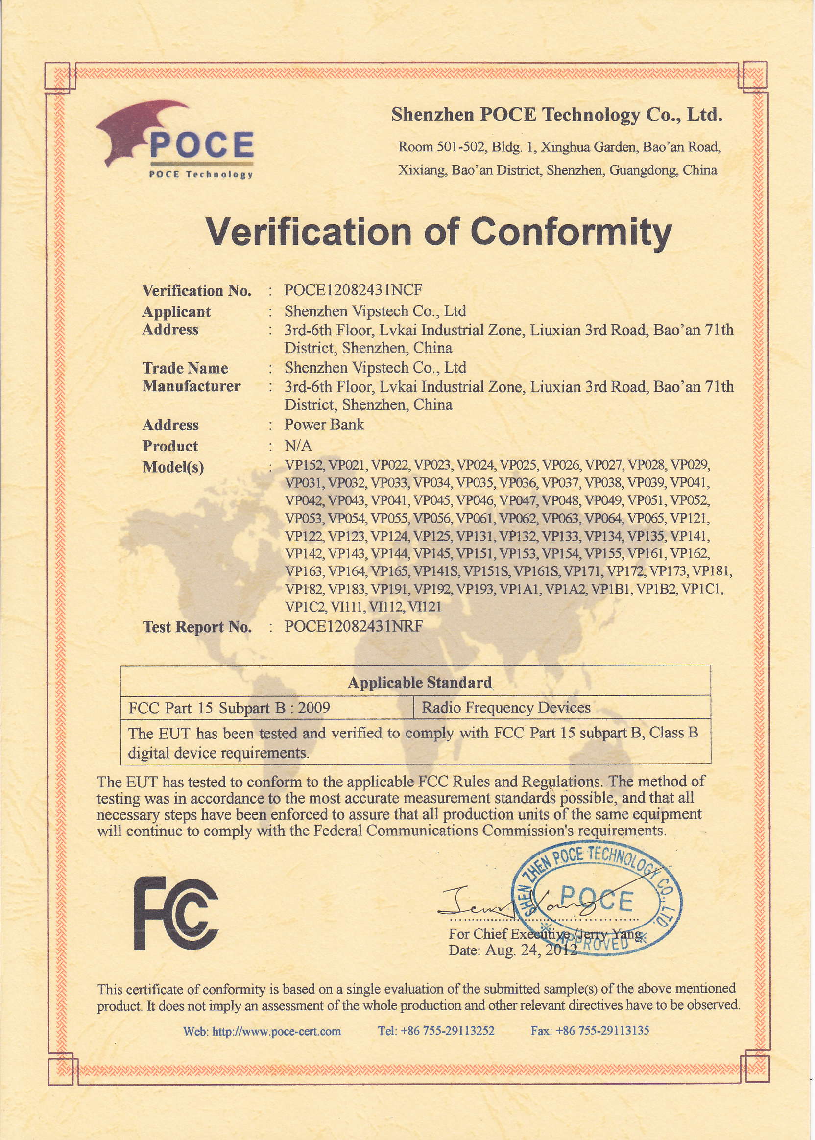 Shenzhen Vipstech Co., Ltd passed ISO 9001 in 2008, and we also passed BV certificate(the report NO.: 10130850844). The products have passed CE, FCC and RoHS certificates.