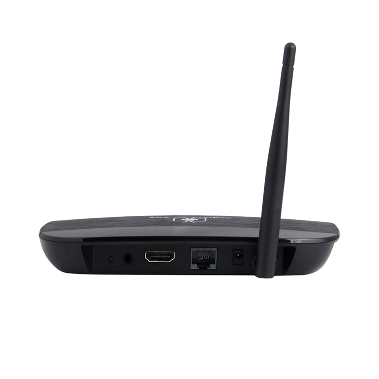 Quad Core Media Player VM64AS, ABS case with oil painting, HD vision, connecting the TV with AV/HDMI, Receiving the WIFI signal to connect internet, External antenna, Support local playback and various APK installed, 5V 1500mA power, the memory and storage can be modernized. Support 4K*2K H.264,4K*2K H.265 and more format of video, audio and picture, even 3D game.
