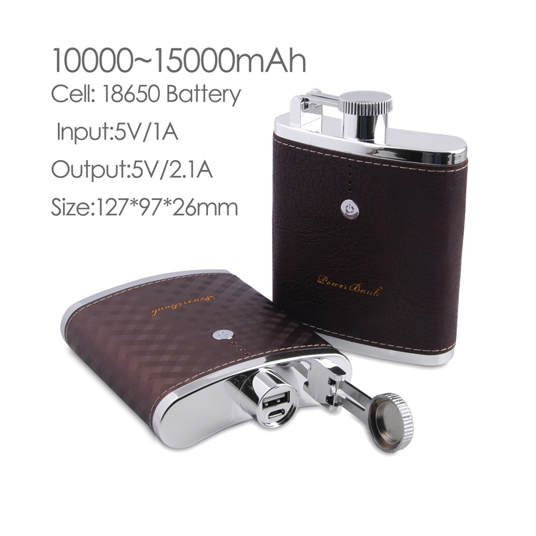 Flagon power bank VP051, PU & ABS case, suitable for gift, 10000mAh/11000mAh/13000mAh/15000mAh can be modernized, 2.1A output, LED indicator, Portable charger for smartphone, camera, tablet PC, PSP, MP3, GPS and Kindle.