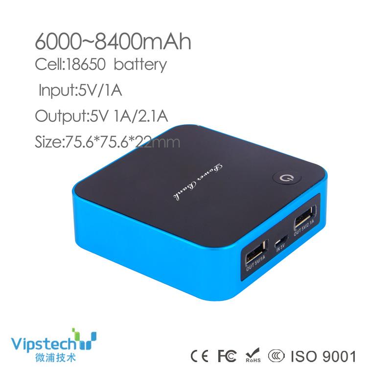 6000mAh/6600mAh/7800mAh/8400mAh can be modernized, 1A & 2.1A output, Portable charger for smartphone, camera, tablet PC, PSP, MP3,