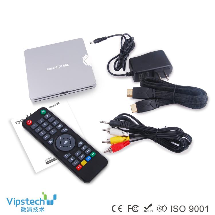 1080P Decoding TV Box VM24C, ABS case with oil painting, looks like mental, HD vision, connecting the TV with AV/HDMI, Receiving the WIFI signal to connect internet, Support local playback and various APK installed, 5V 1500mA power, the memory and storage can be modernized. Support full format of video, audio and picture, even 3D game.