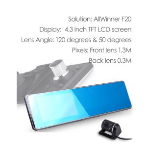 Car Security Camera VC22, dual lens design,120 degrees front wide angle lens and 1.3 Mega pixels CMOS make your picture more clear. Built in G-Sensor, Cycle recording, Night vision, start and record automatically function. 4.3-inch TFT LCD display screen and 1280*720/30fps recording resolution for your video. Support motion detection,file protection,taking photos, recording voice and video replay.