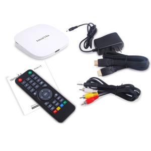 XBMC Support Quad Core IPTV Box VM64C, ABS case with oil painting, HD vision, connecting the TV with AV/HDMI, Receiving the WIFI signal to connect internet, Support local playback and various APK installed, 5V 1500mA power, the memory and storage can be modernized. Support full format of video, audio and picture, even 3D game.